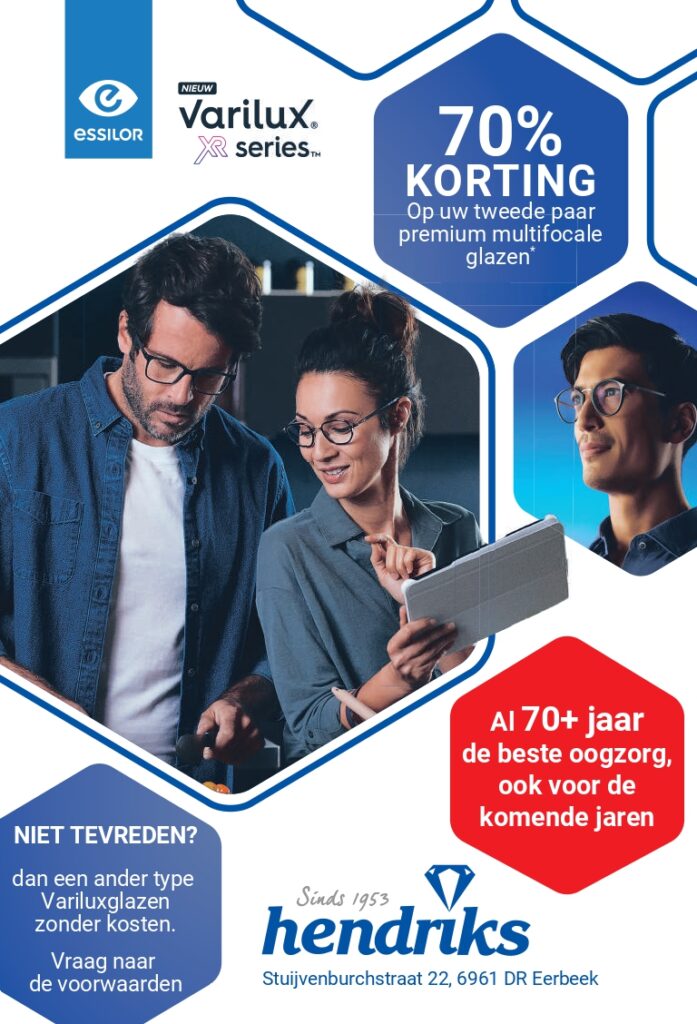 U krijgt 50% op de Varilux- uitvoering en 70% korting op Uw 2.e paar premium multifocale ,(Varilux XR),brillenglazen.